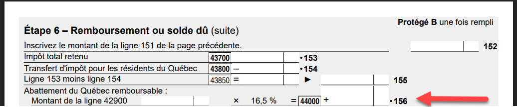L'abattement du Québec sur la déclaration fédérale est calculée automatiquement selon votre revenu net.