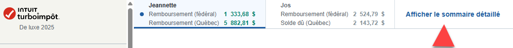 Dans TurboImpôt en ligne, après avoir entré vos informations, cliquez sur Afficher le sommaire détaillé en haut de l'écran.