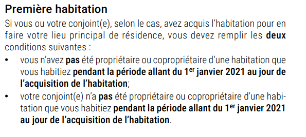 est-ce que les règles sont les mêmes aux 2 gouvernements, sur le formulaire TP-752.HA on dit qu'il faut respecter les 2 conditions "pas été propriétaire du 1 janvier 2021 jusqu'à l'achat de la nouvelle maison et même chose pour le conjoint"