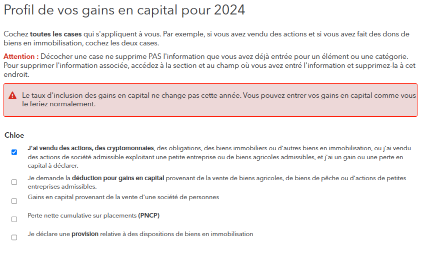 J'ai entré un gain en capital dans l'annexe 3 suite à quelques transactions en cryptomonnaie pendant l'année. J'ai aussi bien coché oui à la question Avez-vous possédé, acquis ou cédé (vendu, transféré, échangé, donné) des cryptoactifs en 2025?