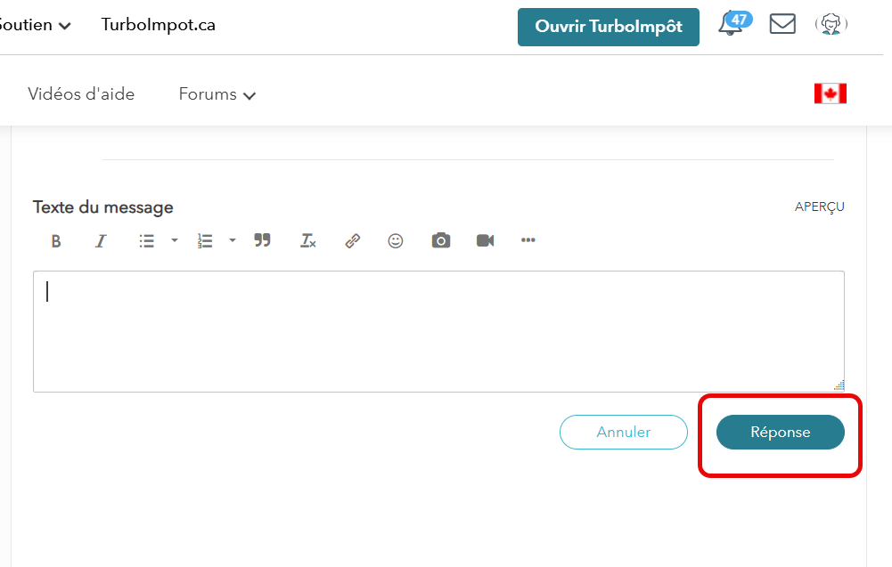 @Nancy Lacroix Il arrive parfois que, si vous ne voyez pas le bouton Répondre, c'est souvent relié avec l'affichage de votre navigateur. Une façon simple de résoudre ce problème est cliquer sur les trois point en haut à droite de votre navigateur >> réduisez le zoom à 90%.