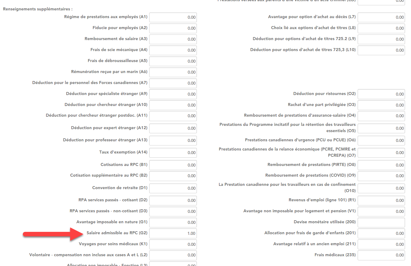 La case G 2 du Relevé 1 se trouve plus bas dans le relevé sous Renseignemsnts Supplémentaires: