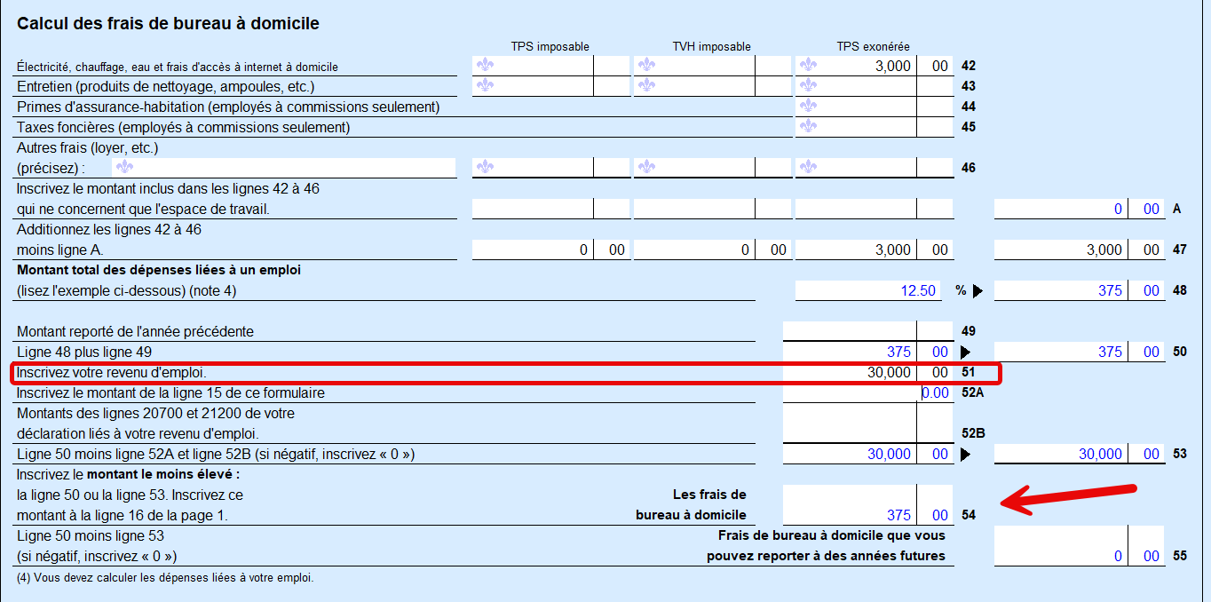 @josecat Si vous utilisez TurboImpôt Bureau, dans le formulaire T777, vous avez une case où il faut entrer le salaire concerné par ses dépenses d'emploi (voir image qui suit):