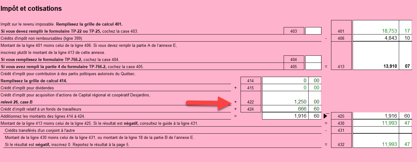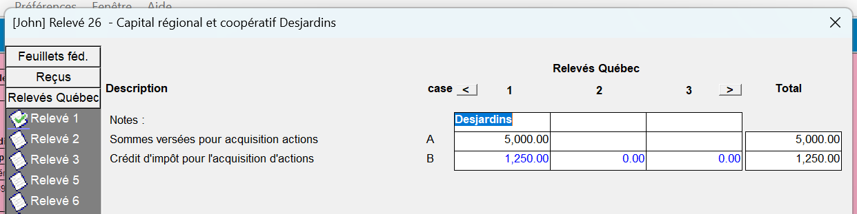 Actuellement dans le Relevé 26 la limite du montant de la case B est de 900$. Bien qu'un montant de 1250$ peut être forcé manuellement ce changement ne se réflète pas à la ligne 422 de la déclaration du Québec qui reste à 900$.