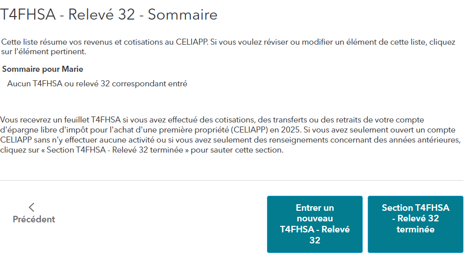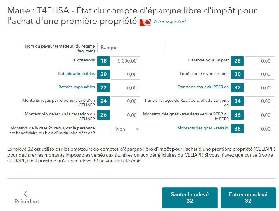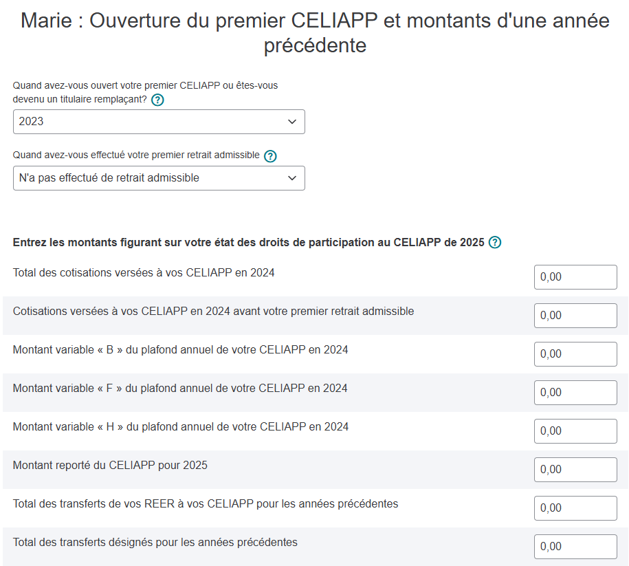 Entrez les informations selon votre avis de cotisation 2024 ou rien si vous avez ouvert votre CELIAPP en 2025.