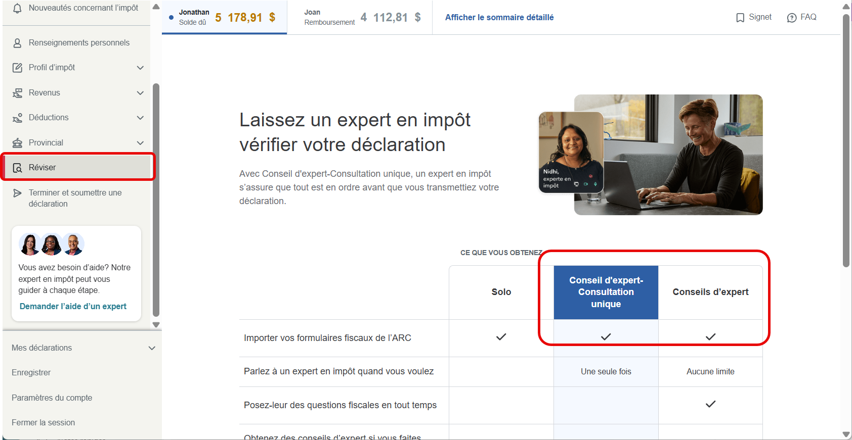 Demander un appel d'un expert pour ma déclaration