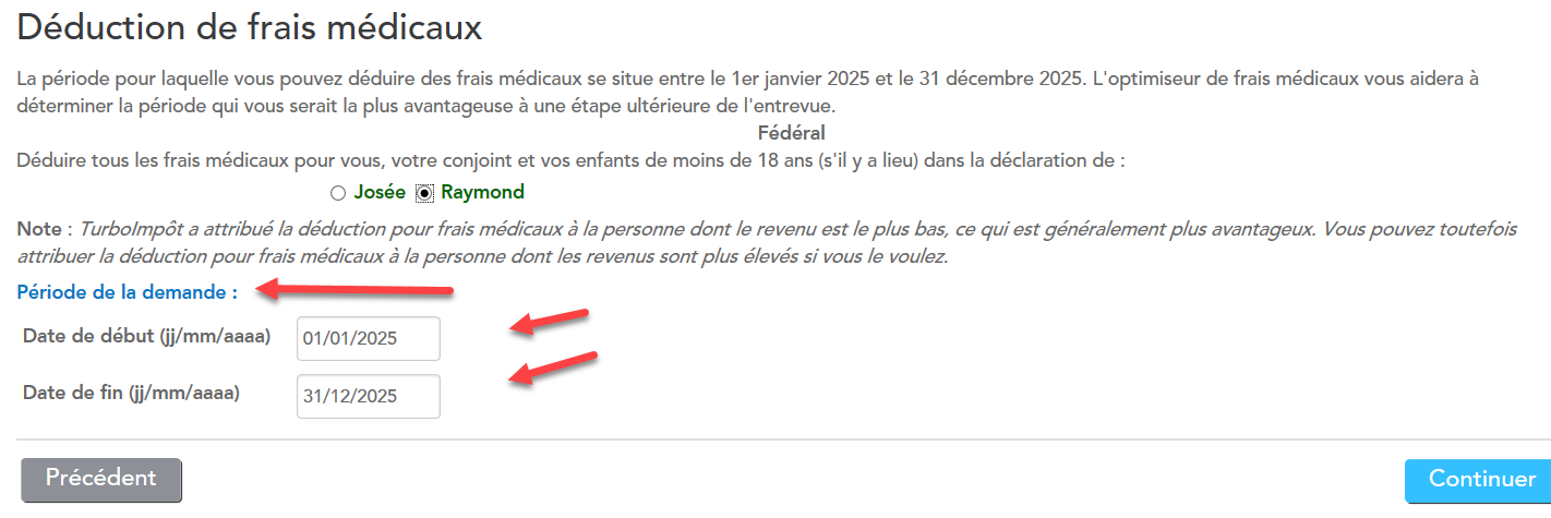 La période des frais médicaux doit être 12 mois et doit se terminer dans l'année en cours (ex: juin 2024 à juin 2025) Mais ce n'est pas votre cas.