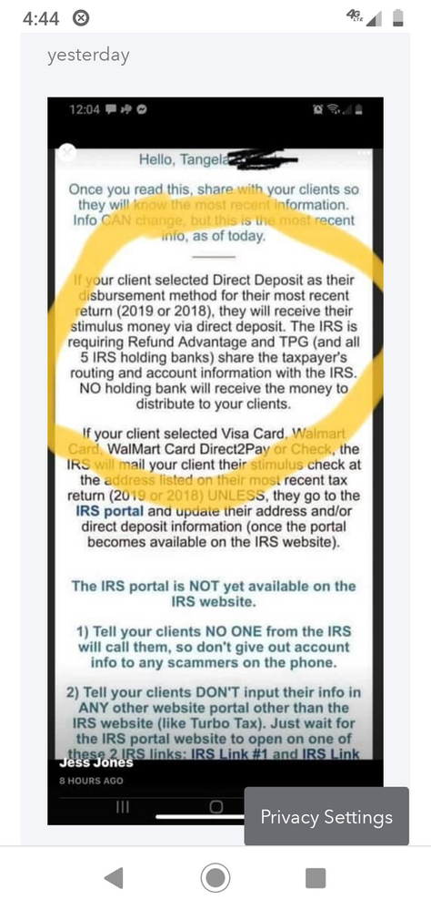 Envoyé dans : Re: COVID Stimulus Payment:(Please allow people who used Turbocard to change our Payment method t... - ( ‎avril 13, 2020 7:53 AM )