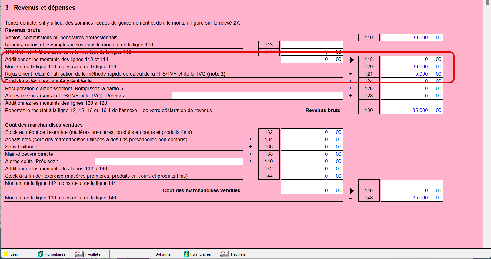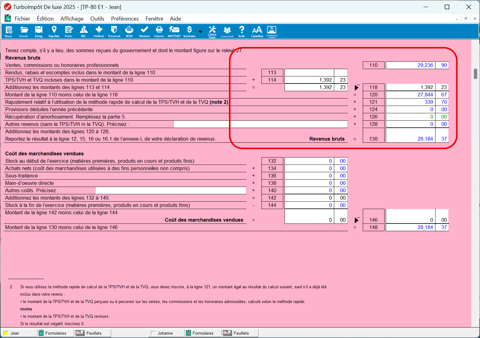 Formulaire TP-80 Ligne 121 et Méthode Rapide TPS/TVQ