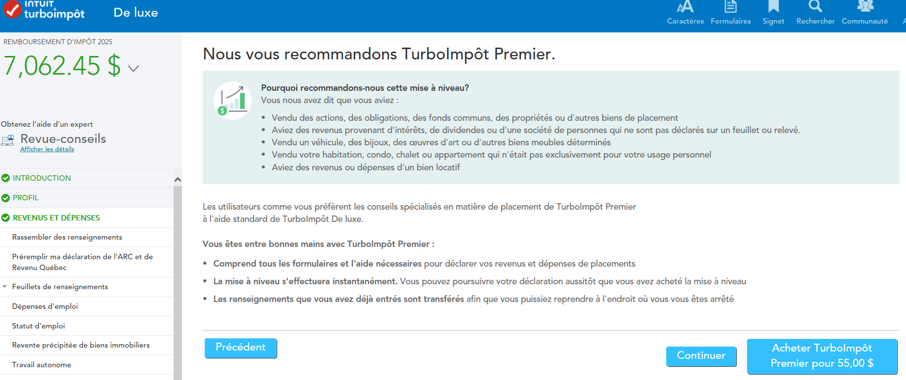 J'ai transmis mes déclarations sans acheter la version Premier. Votre réponse n'était pas adéquate.